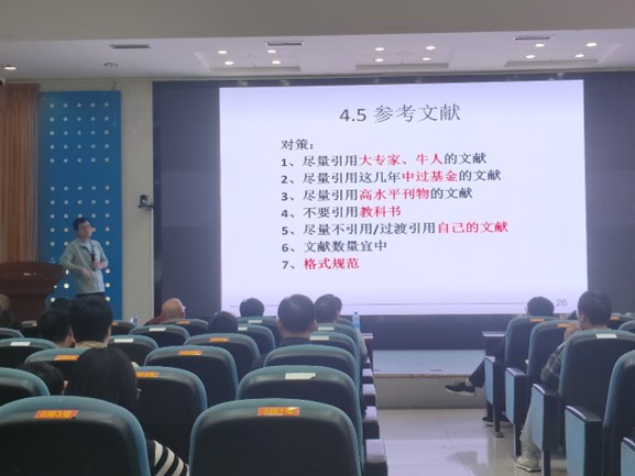刘吉研究员结合自身丰富的基金申报经验,从申请书的基本构架出发,深入讲解了申报流程中的关键要点和撰写时需规避的常见问题。期间,他与参会老师们进行了热烈交流,为教师们提供了宝贵的申报策略和实用建议,助力科研人员更好地理解和掌握基金申请过程。