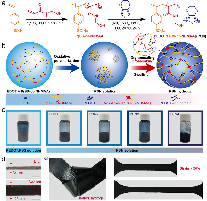 图1 PEDOT: P(SS-co-NHMAA)水凝胶的设计与合成