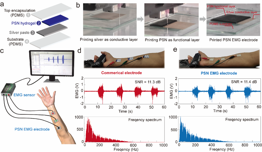 基于PSN水凝胶柔性皮肤电极的多材料一体化3D打印及其电生理信号记录