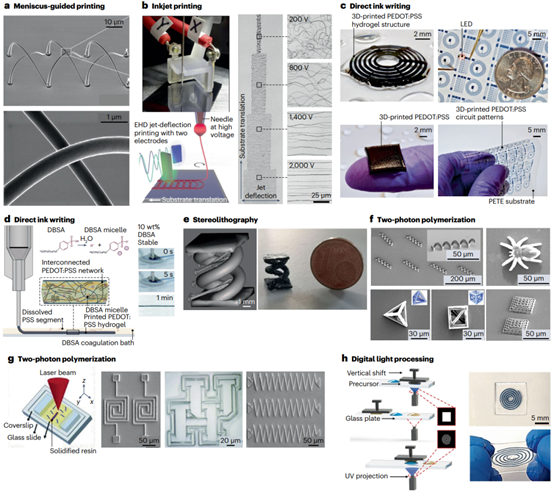 图3 打印技术概述及PEDOT:PSS基墨水可打印性评估