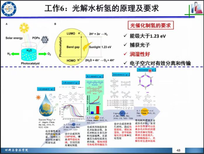 接着基于三聚茚有机光电材料,讲述了在有机太阳电池、钙钛矿太阳电池、光解水析氢和电致变色领域做了一系列工作,这对三聚茚有机光电材料的发展具有重要的推动意义。
