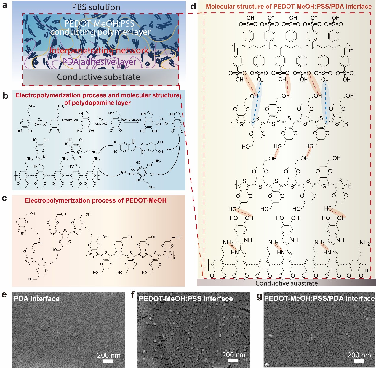 图 2 互穿PEDOT-MeOH:PSS/PDA导电界面。