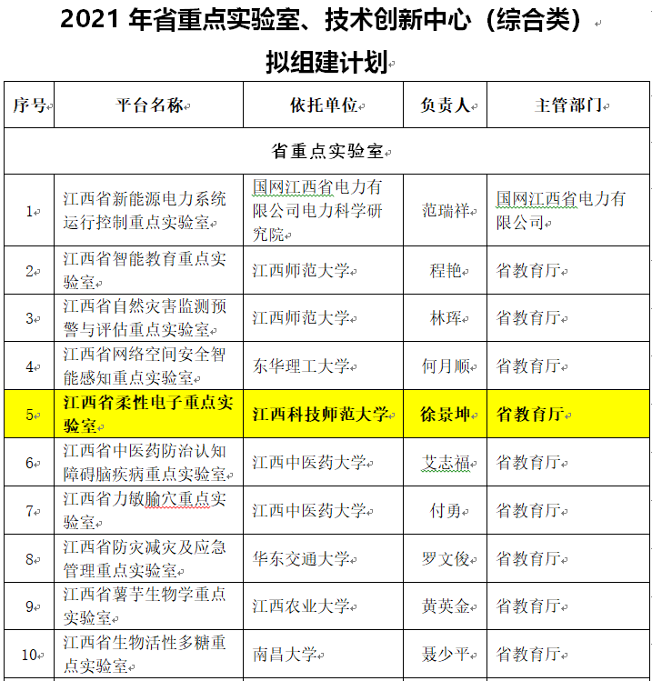 2021年10月11日,江西省科学技术厅发文公布2021年江西省省重点实验室名单,“柔性电子创新研究院”名列其中。